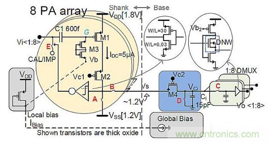 PA的面积受到电极大小的限制。其功率受限于可接受的组织加热限制。噪声需要比最小信号幅度(可能低至几十微伏)更低。通常,降低噪声的简单方法是为PA晶体管提供更多电流,这也将带来更高带宽。