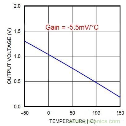 图4:LMT84输出电压与温度之间的关系图