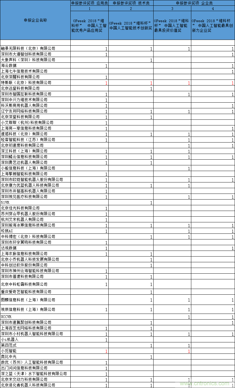 本次评选是2018年度唯一一项由权威行业门户举办的重大赛事,全程免费,活动费用由评选组委会承担,企业无须支付任何参评或奖项费用;评委团由各大投资机构、协会、院校、孵化平台以及著名投资人组成,严格把关;奖项覆盖全人工智能产业链结构,设立4大奖项让所有人工智能企业都有机会竞逐奖项;并且参评企业还可以免费参与同期OFweek举办的中国人工智能大会,与资深专家和行业大咖面对面,学习最前沿、最热门实用的市场趋势及技术应用。