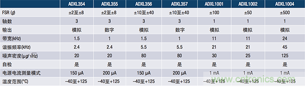 ADI公司最近推出了一系列新型低噪声、低功耗、3轴加速度计:提供模拟输出的ADXL354;提供数字输出和±2 g、±4 g、±8 g可编程范围的ADXL355;提供模拟输出的ADXL356;提供数字输出和±10 g、±20 g、±40 g可编程范围的ADXL357。