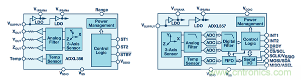 图1. ADI公司新推出的ADXL356和ADXL357 MEMS加速度计