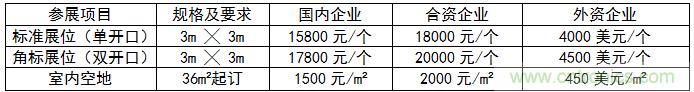 ■ 收费标准:国内人民币RMB18000元/场/小时 外资USD4800元/场/小时(提供音响、投影仪、幕布、 矿泉水等相关服务,需要举办技术讲座的企业请提前与主办单位联系,于开展前50天将讲座题目、内容简介、主讲人姓名报组委会)
