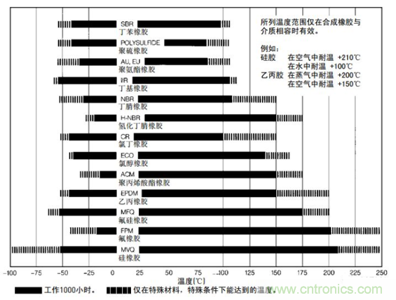 图3:典型O型圈材料的使用温度范围(source:Parker)