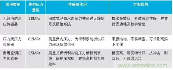 物联网及家电领域陶瓷电容压力传感器典型应用如下表所示: