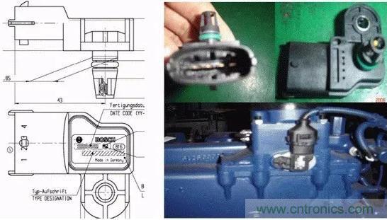 原理:传感器皮膜上的传感器元件将高压管道内的压力变化转化成电压信号输送到ECU。一旦损坏,压力控制阀就通过应急(备份)功能,按设定值被“盲”触发。