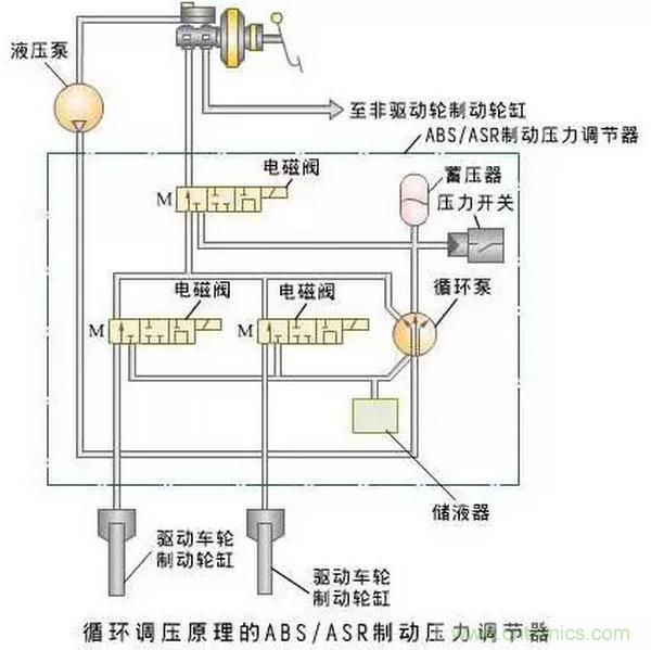 2)底盘电子控制系统包括防抱死控制系统(ABS)、防滑转电子控制系统(ASR)、悬架电子控制系统、自动变速器电子控制系统、巡航控制系统等。