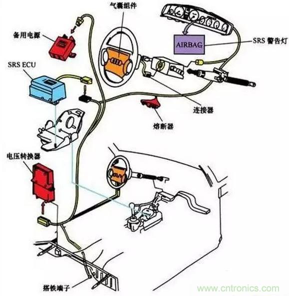 3)车身电子控制系统包括安全气囊系统、自动空调系统、电子仪表系统及防盗系统等。