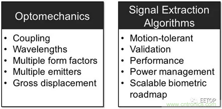 图3:集成光学心率传感器的主要挑战