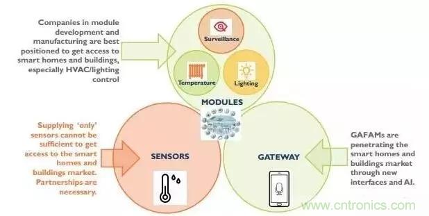 【导读】在智能家居领域,传感器、模块、网关已成为智能家居的三大基石。其中,传感器与智能家居系统逐渐形成深度集成。封装后的各类传感器芯片,可用于监测温度、湿度、气压、空气质量等环境,这些传感器设备可与厨房、卫生间、门窗等场景与家电联动,形成家居智能化场景。