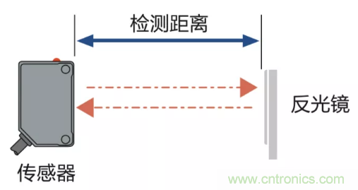 镜面发射型光电传感器:传感器和反射镜之间的距离
