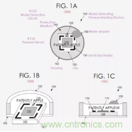 苹果公司的专利经常涉及传感器技术,此次公布的新专利是一种具有检测水分功能的压力传感器,封装尺寸约数毫米。该款压力传感器集成了用于检测水分的一个或多个电极,并在一些实施方案中,还采用了能够使水分蒸发的一个或多个加热元件。