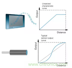 多项式是指将电感式模拟传感器的典型输出曲线转换为线性信号所采用的数学函数。例如,它被集成在可编程逻辑控制器的软件中,将S形传感器信号变换为直线。