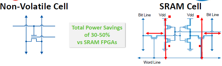 图12 Flash架构FPGA与SRAM架构FPGA的差别