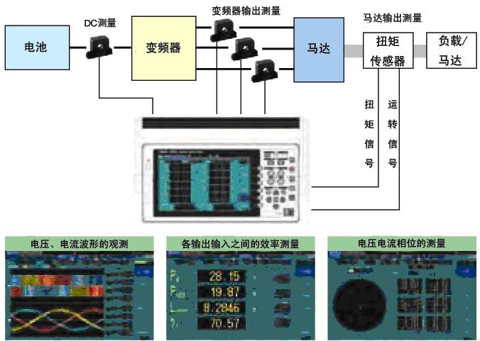 在强化新能源相关系统的开发和设备的节能化的进程中,针对功率测量方面的要求涉及许多方面。图1是变频器马达测量的典型例子,而且最近的动向和测量需求的主要方面,可列举出以下事项: