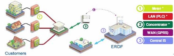 图3:法国EDF旗下公司法国配电公司(ERDF)的Linky项目简略示意图。