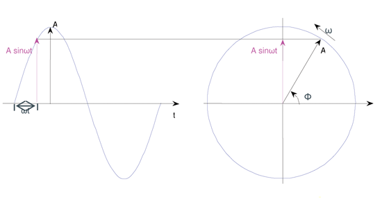 信号矢量在纵轴上的投影长度等于信号的峰值幅度乘以相位正弦值,因此,如果信号是一个正弦波,该投影就对应于信号的瞬时幅度(见图1)。